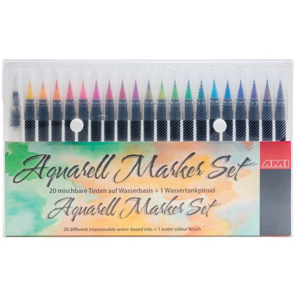 Aquarell Brush Pens mit 20 verschiedenen Farben inkl. 1 Wassertankpinsel.