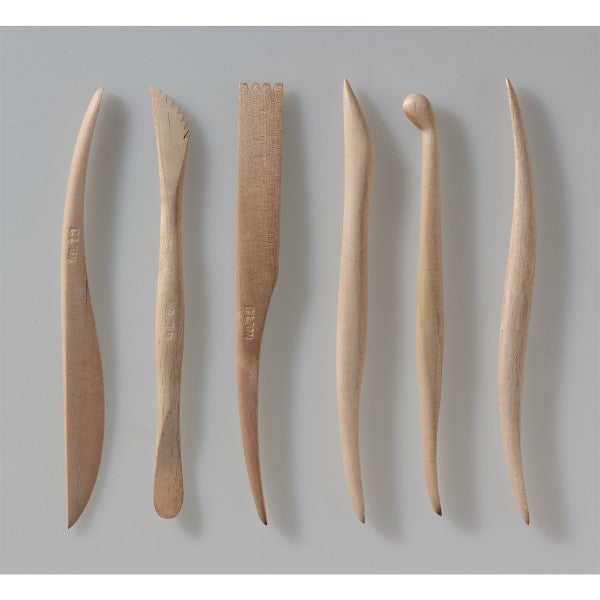6 verschiedene Modellierhölzer mit 15 cm Länge aus geschliffenem und poliertem Birkenholz.