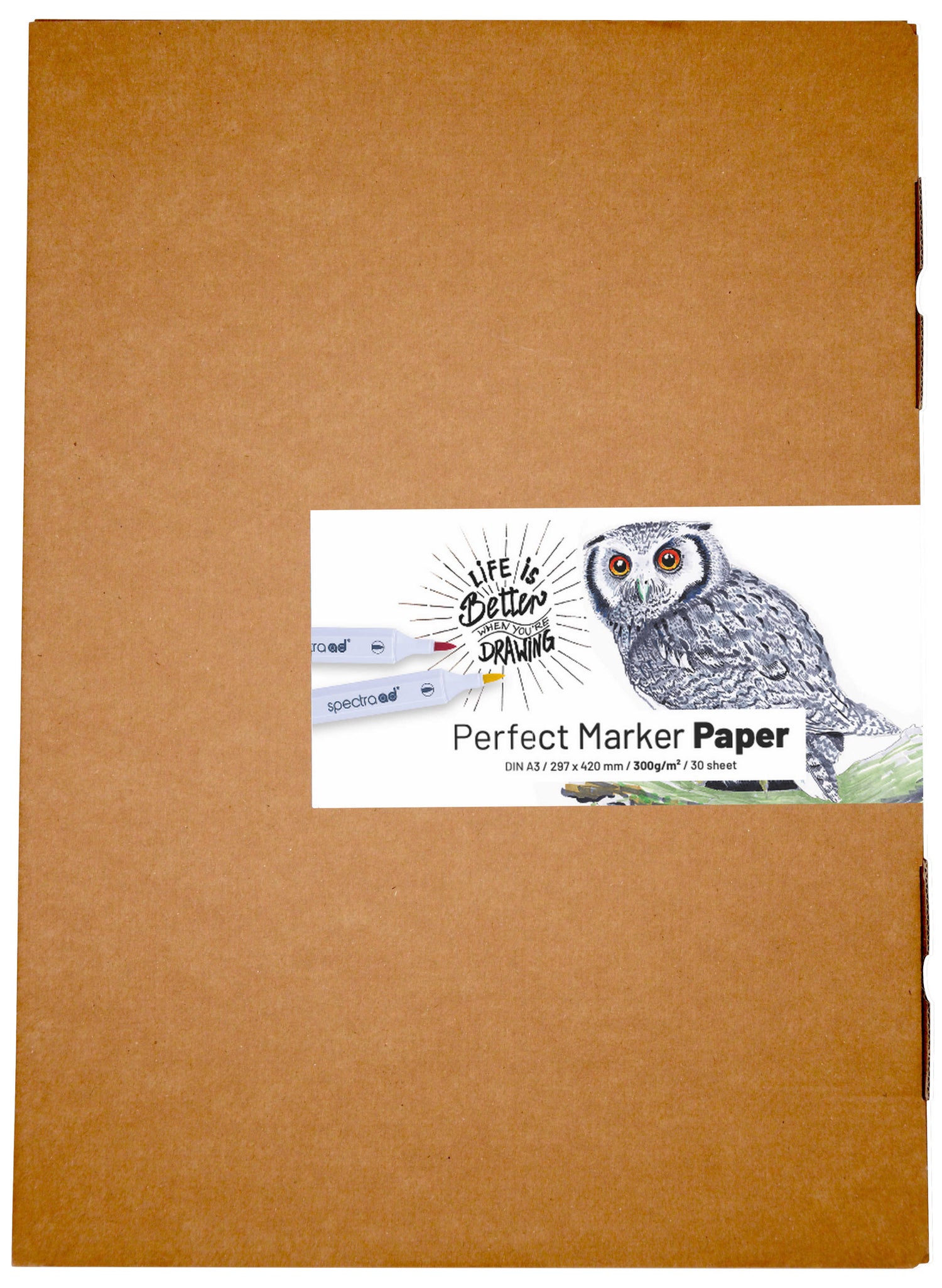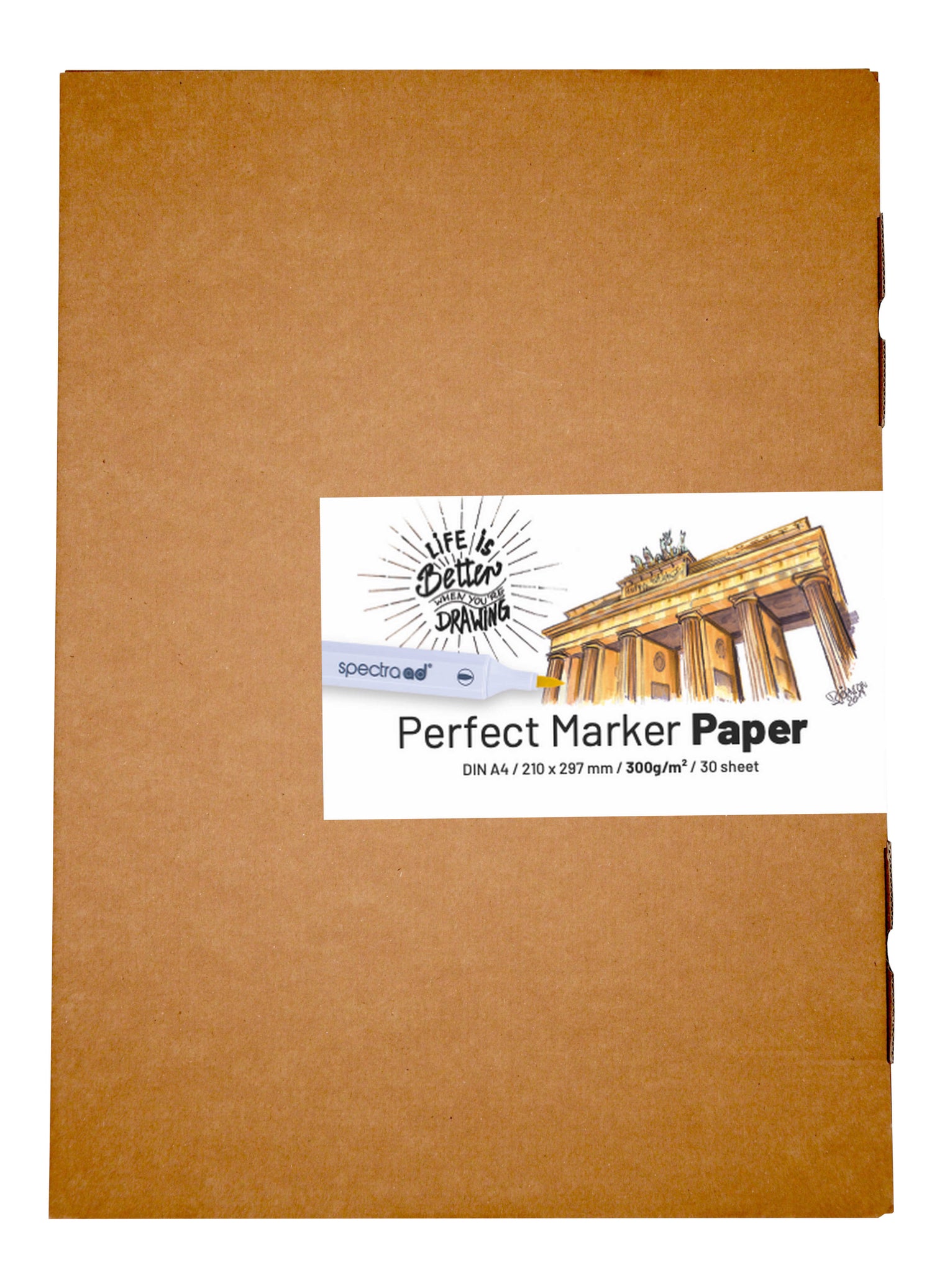 Das Perfect Marker Paper, welches in den Größen A3, A4 und A5 erhältlich ist, eignet sich sehr gut für unsere Marker, da die Oberfläche sehr glatt ist und schonend für die Brushsspitze. Sie sind in einem umweltfreundlichen Karton á 30 Blatt verpackt und ist mit 300g/m2 sehr dicht, somit eignet es sich wunderbar für Zeichnungen die anschließend verschenkt, ausgestellt usw. werden.