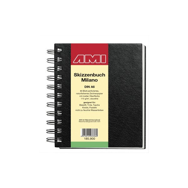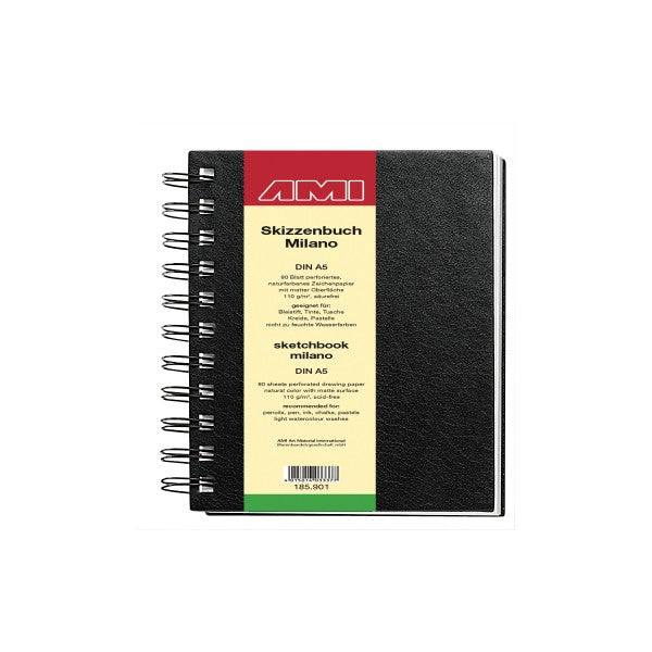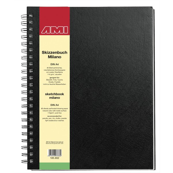 Spiralbindung mit schwarzem, leicht genarbten Einband aus extra starker Pappe.