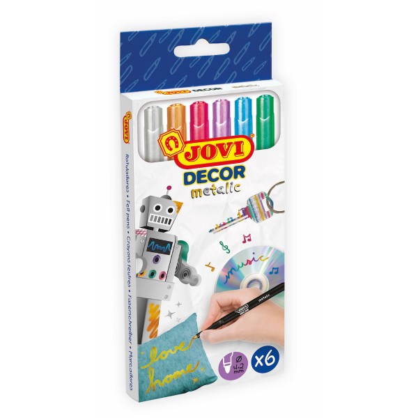 Das Set besteht aus 6 Stiften in den Farben Silber, Gold, Rot, Lila, Blau und Grün.