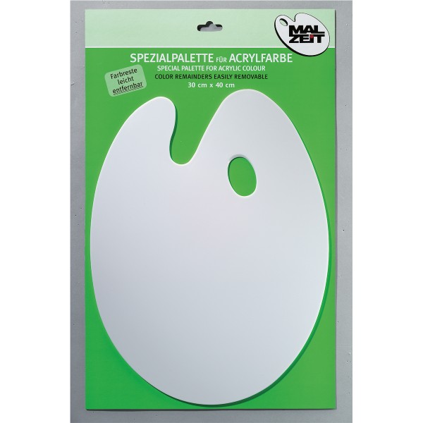 Ovale Palette aus weißem Kunststoff mit Spezialbeschichtung.