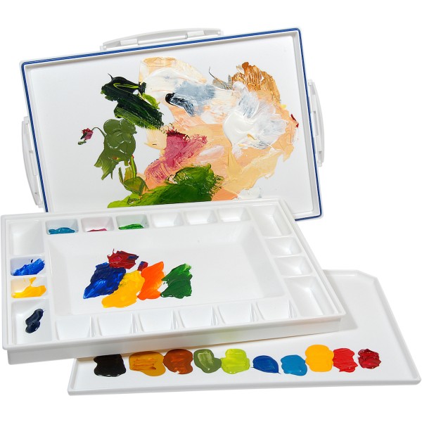 Luftdichte Palettenbox für Acryl- und Aquarellfarben.